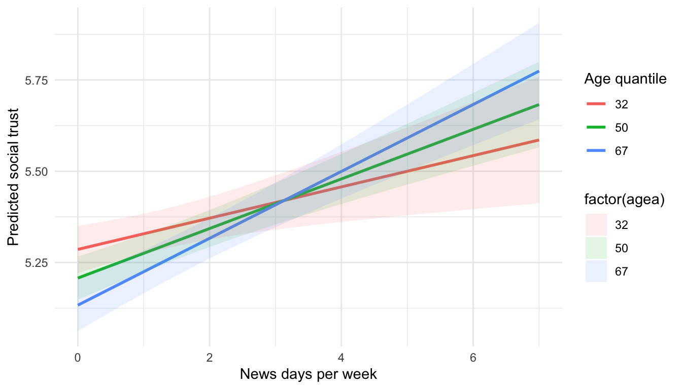 labs(y = "Predicted social trust", x = "News days per week", color = "Age quantile") +